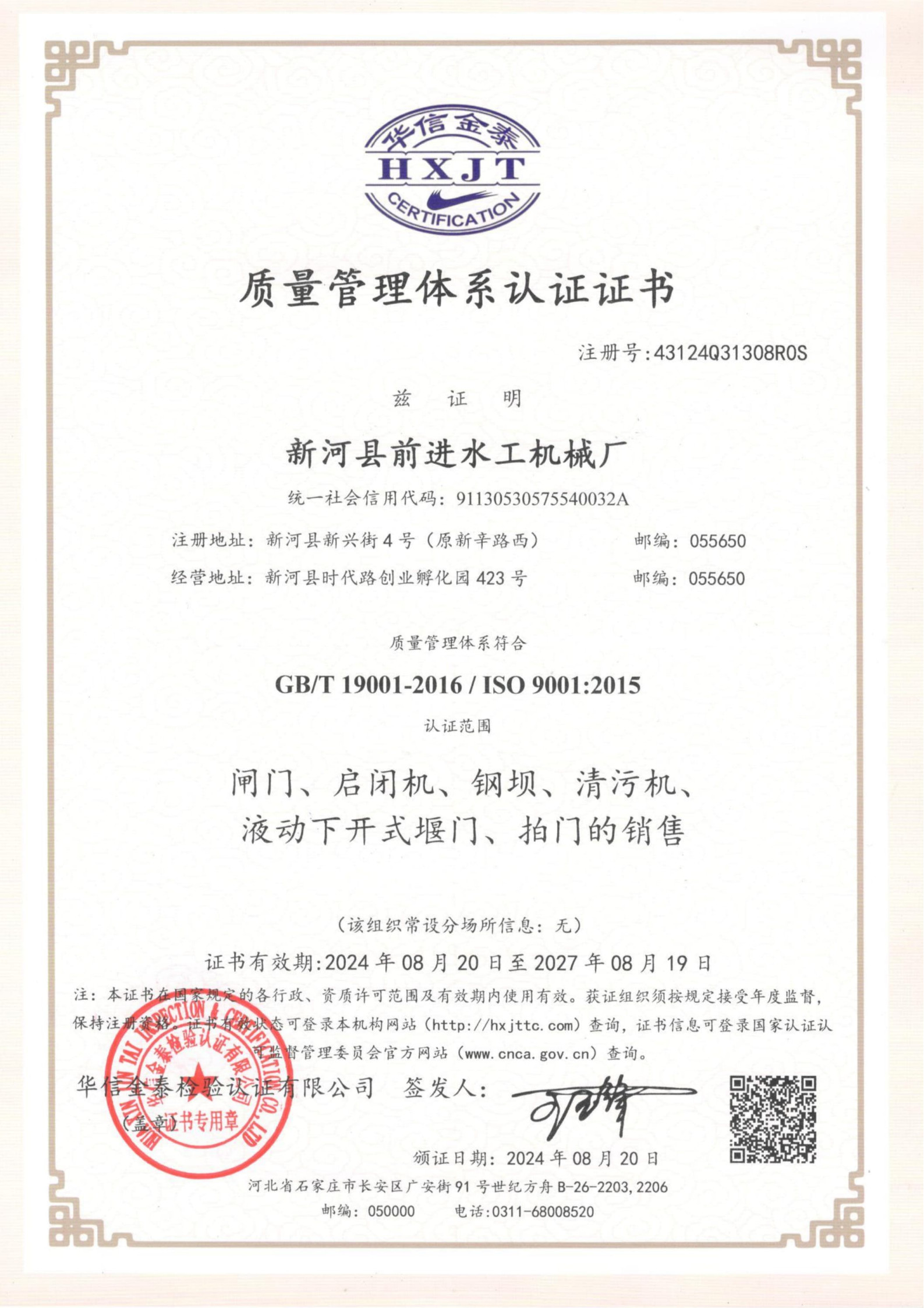 新河縣前進(jìn)水工機(jī)械廠(chǎng)是一家專(zhuān)門(mén)從事水利工程設(shè)備研發(fā)生產(chǎn)的廠(chǎng)家,現(xiàn)有員工228人,各類(lèi)高、中級(jí)專(zhuān)業(yè)工程技術(shù)人員近30人,技術(shù)生產(chǎn)工人180多人。公司占地面積14674平方米。公司擁有車(chē)、鉗、刨、銑、冷作、鈑金、鑄造等,工種齊全,加工能力和技術(shù)力量雄厚,并具備理化測(cè)試手段與儀器設(shè)備。前進(jìn)水工專(zhuān)注景觀(guān)閘門(mén),鋼壩,合頁(yè)壩,液壓升降壩,液壓閘門(mén),臥倒門(mén),一字門(mén),人字門(mén),液壓?jiǎn)㈤]機(jī),卷?yè)P(yáng)啟閉機(jī),螺桿啟閉機(jī),清污機(jī),除污機(jī),閘門(mén),拍門(mén)等設(shè)備的研發(fā)與生產(chǎn),是新河水利工程產(chǎn)品行業(yè)的領(lǐng)跑者,不僅在同行業(yè)群中揭起了一次又一次的技術(shù)革新,更為水利工程企業(yè)提供了更高更大的選擇平臺(tái)。